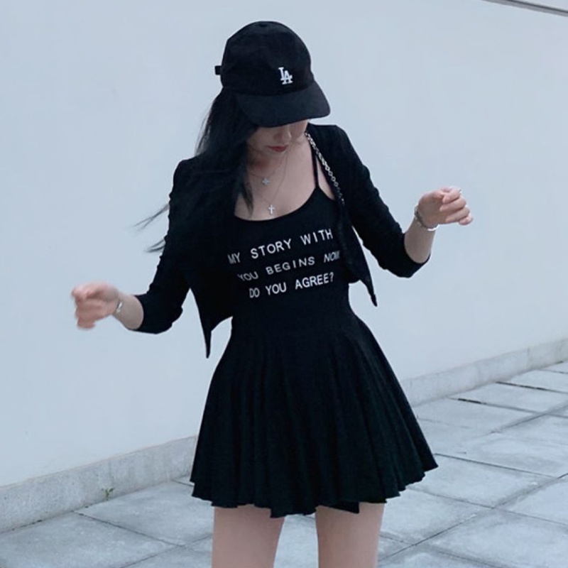 夏裝新款甜辣氣質套裝 純欲低胸性感吊帶裙洋裝兩件套