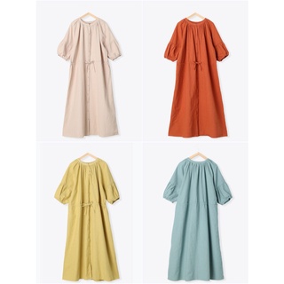 Samansa Mos2 棉麻混紡泡泡袖開襟連身洋裝