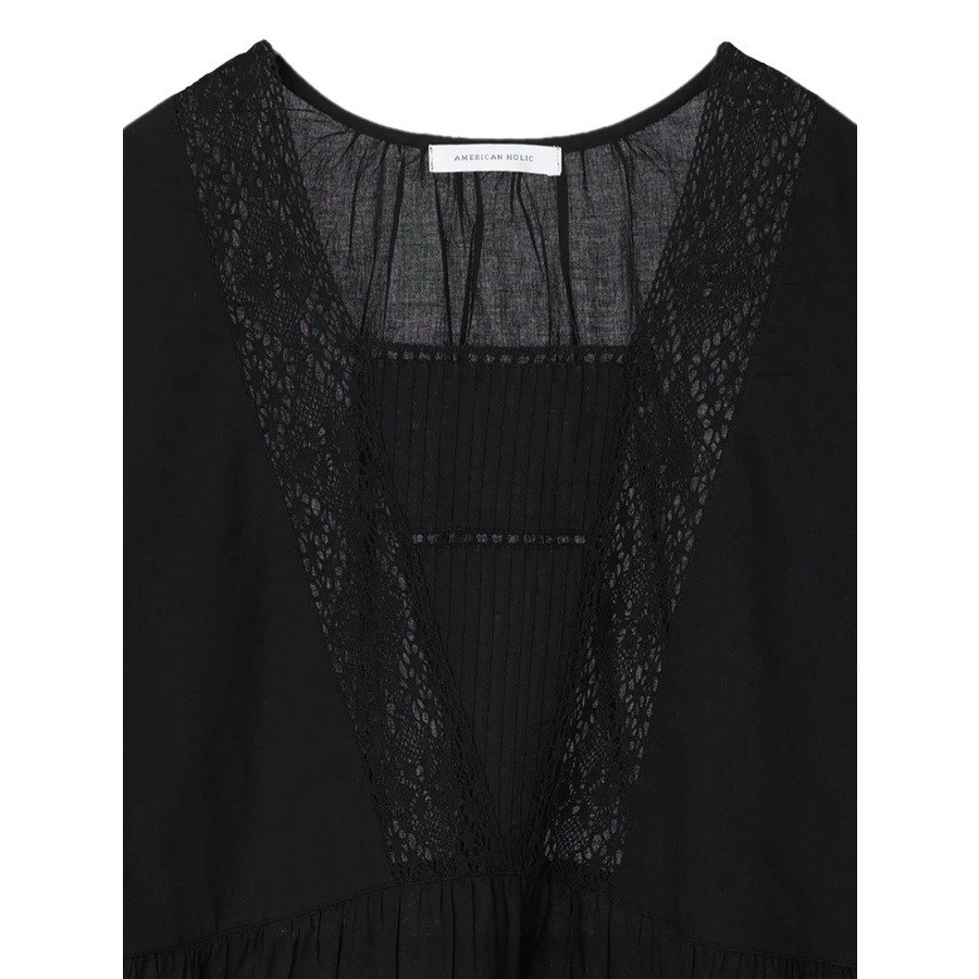 AMERICAN HOLIC 蕾絲拼接束腰連身洋裝