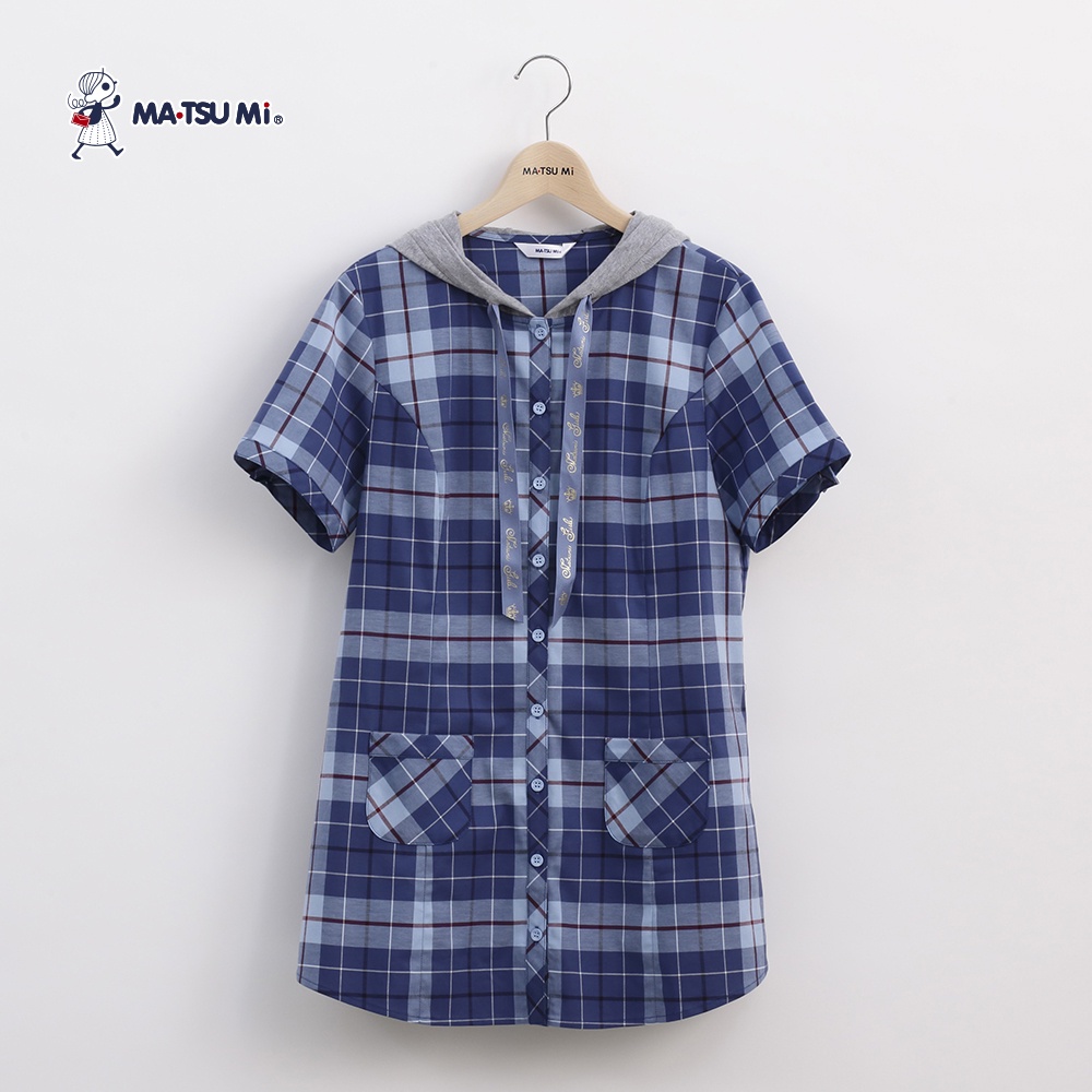 MA‧TSU Mi 新版格紋連帽短袖長版襯衫