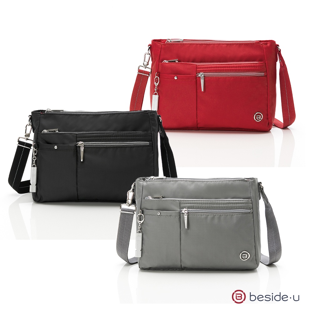 beside u 斜背包 防割包 RFID 防盜錄 多夾層側背包